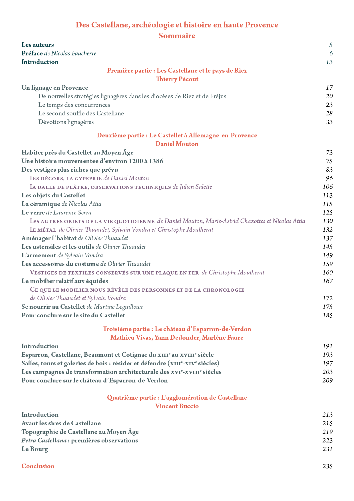 La famille de Castellane, voici le fil d’Ariane entre les différentes parties de ce livre car si deux autres châteaux des XIIIe-XIVe siècles, Esparron-de-Verdon et l’agglomération de hauteur de Petra Castellana sont également ici évoqués, c’est parce que tous ont croisé leur chemin.